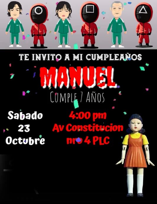 Squid Games Invitation Card Tarjeta De Invitacion Juegos Del Calamar Netflix Party Birthday Template Postermywall